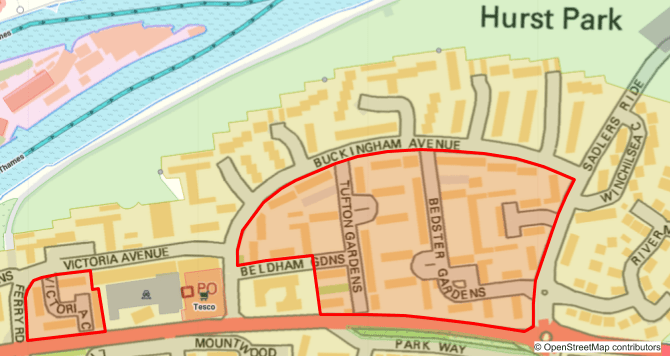 Hurst Riverside Lands Limited (HRLL) is a company limited by shares, incorporated under the Companies Act 1948. Its purpose is to own and manage the communal areas of that part of the Hurst Park Development bounded by Hurst Road, Sadlers Ride and Buckingham Avenue, as well as Victoria Close and part of Victoria Avenue. It’s jurisdiction extends to the gardens and garage forecourts within this area but not the roads and footpaths which are the responsibility of the council. It is the footpath edge that forms the boundary line to HRLL land. Verges that sit between a footpath and a road are outside our demise.